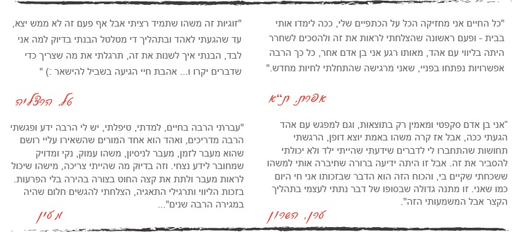 הרבה זמן התלבטתי לגבי מערכת יחסים שידעתי שלא תורמת לי עוד אבל היה לי קשה לקבל החלטה, פחדתי מלהיות לבד, פחדתי מההתמודדות ולא היה לי כוח לעשות את הצעד. בזכות הקורס למדתי לעמוד על שלי בלי לפחד,